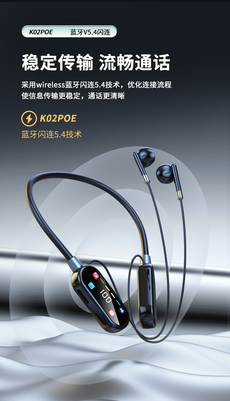 2025 New Digital Noise Reduction Hanging Neck Bluetooth Headset Real Wireless All-in-Ear Sports Long-term Painless Private Model